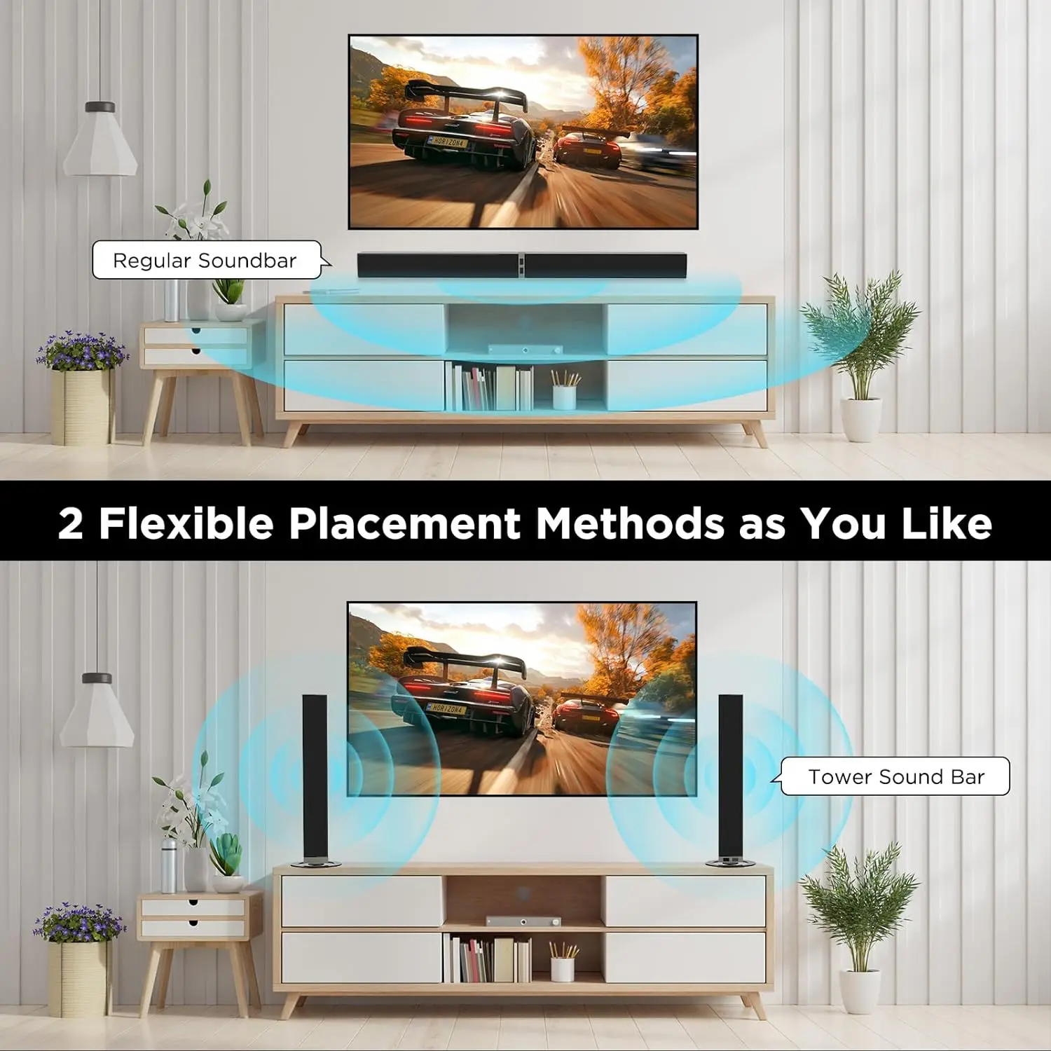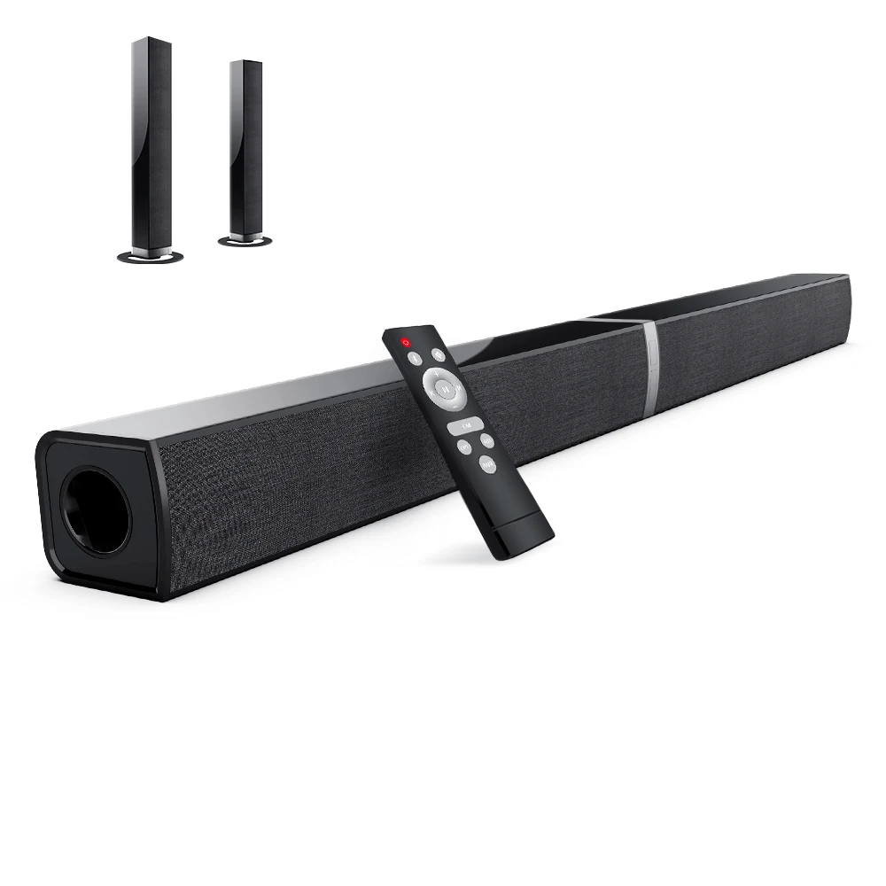 Enhanced Audio Experience: Experience dynamic and immersive audio with our unique tv sound bar, designed to be separated into two compact tower speakers. The vertical combination of the two tower speakers provides a vibrant sound experience, perfect for movie nights and music sessions. The soundbar's innovative design not only enhances your audio experience but also complements your home decor, adding a touch of modernity to your space