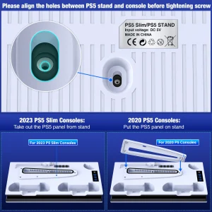 - 【WHAT YOU GET & CUSTOMER SERVICE】 You’ll receive 1X PS5 Stand and Cooling Station with Dual Controller Charging; 4X Type C Charging Dongles; 1X Fixed Charging Cable (53cm; 1X Headset Holder; 1X Panel for 2020 PS5 Console; 1X Screw; 1X PS5 Cooler User Manual. We are dedicated to providing customers with the best products and services. Please feel free to contact us if any issues. TIPS: The PS5 fan stand has a memory function. The last wind speed setting will be maintained when turned on again