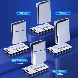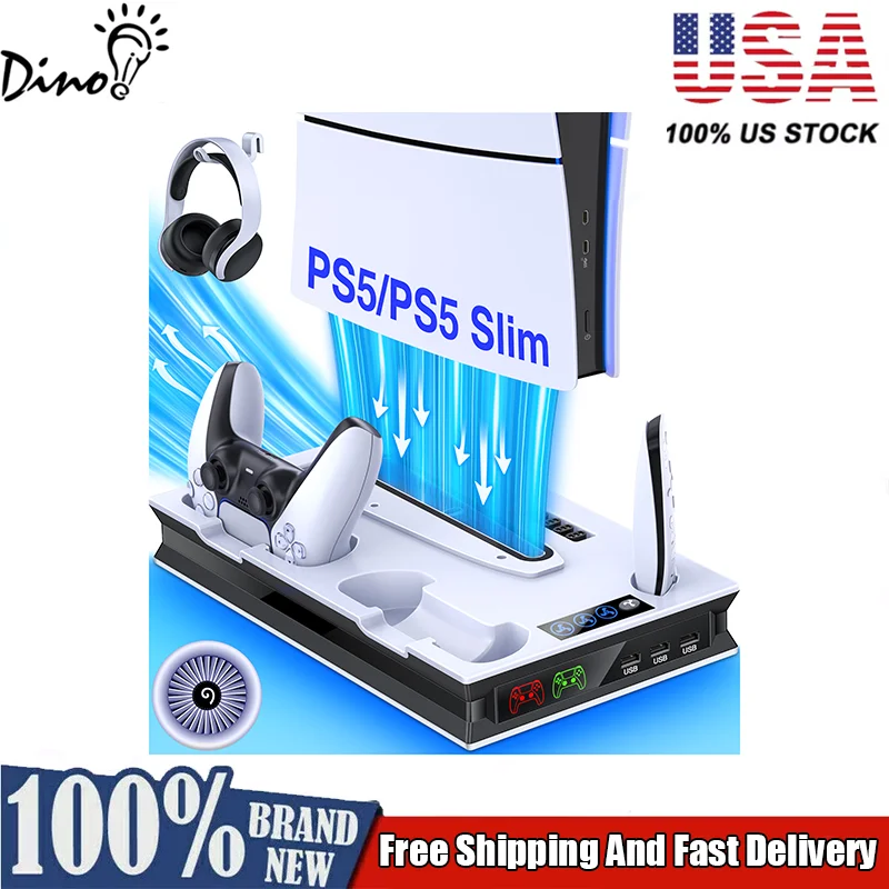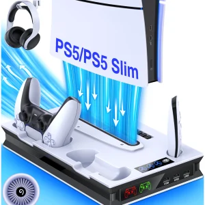 - 【PS5 SLIM STAND WITH ENLARGED TURBO FAN】 The PS5 cooling fan has 3 adjustable levels: Strong/Medium/Normal. With enlarged 2.36in turbofan, PS5 accessories PS5 fan pulls out hot air from the bottom of console and efficiently dissipate heat from side, ensuring that PS5 console stays cool without noise, enhancing your gaming experience. No worries about console overheating during long gaming sessions! PS5 cooling station will maximize the lifespan of console